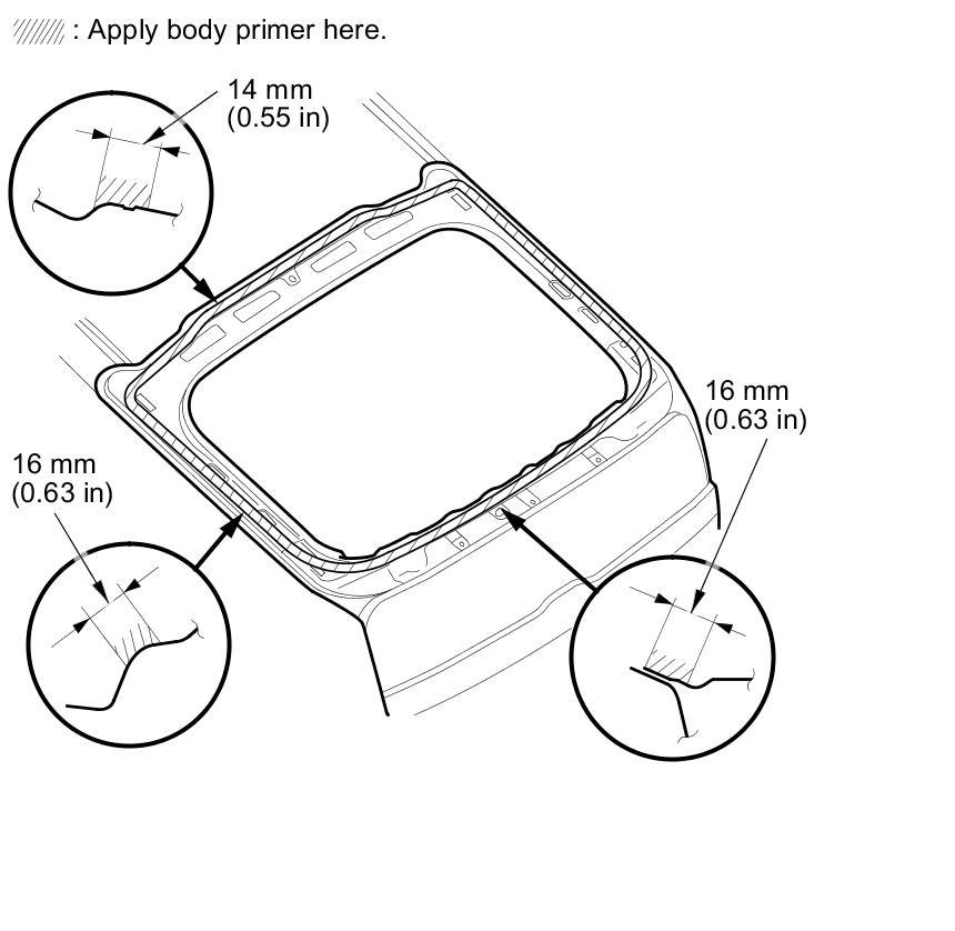 - Never touch the primed surfaces with your hands. If you do, the adhesive may not bond to the upper rear window properly, causing a leak after the upper rear window is installed.