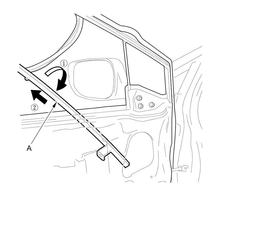7. Twist the front lower channel (A) to pass it through the gap between the door panel and the sash, then pull the channel up to remove it.