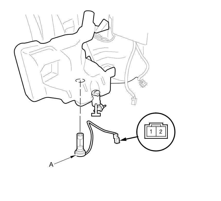 3. Remove the washer fluid level switch (A) from the washer reservoir.