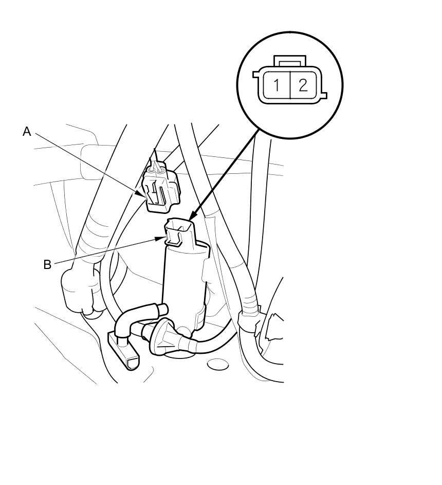 2. Disconnect the 2P connector (A) from the washer motor (B).