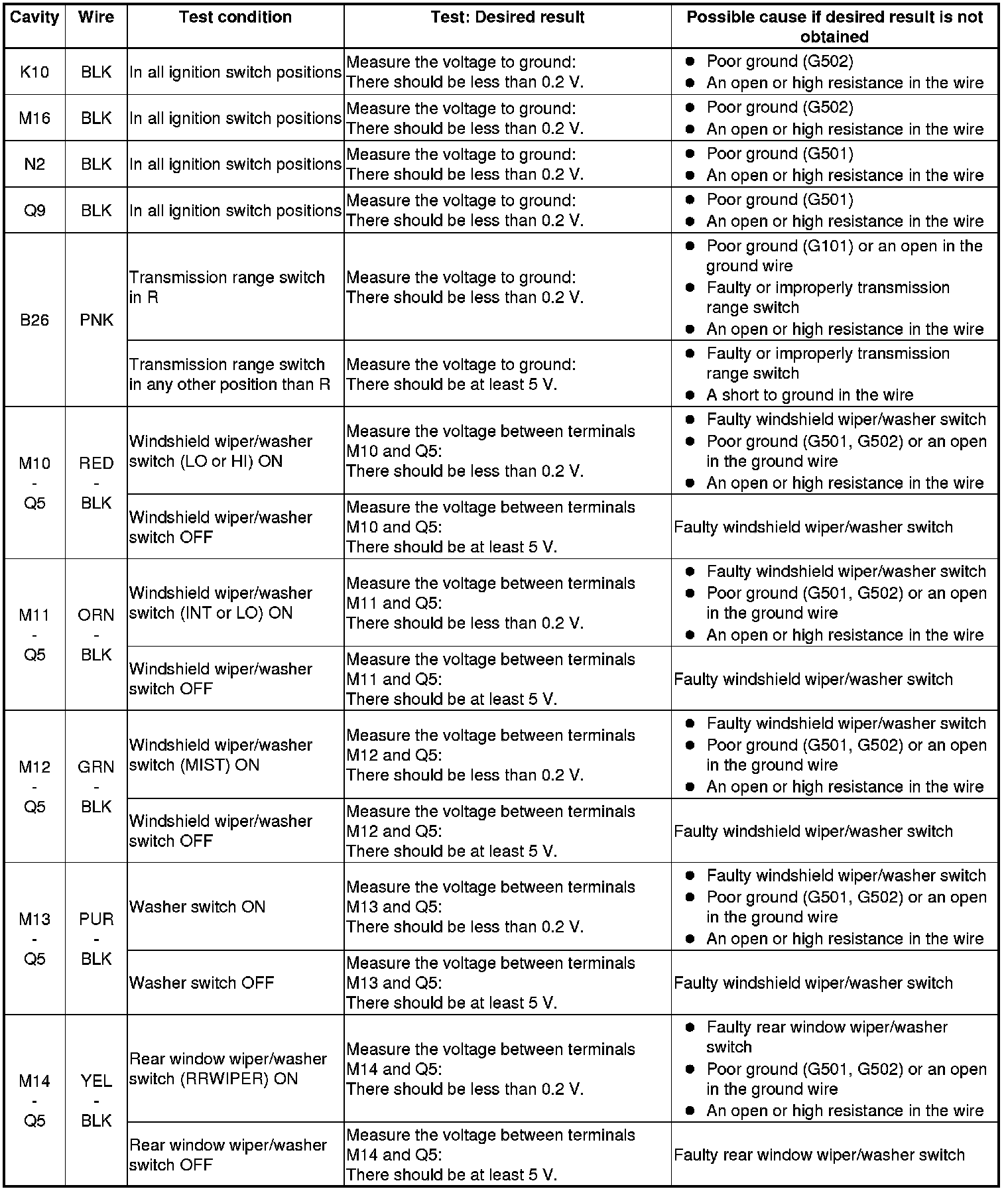 - If the rear window wiper malfunctions, and no DTCs are detected, check the rear window wiper motor and for an open in the ground circuit of the rear window wiper.