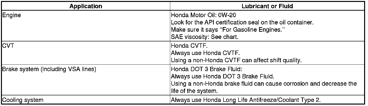 * Lubricate the following areas using the recommended lubricants and fluids.