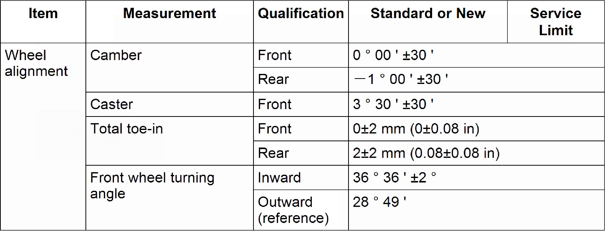 Wheel Alignment Specifications