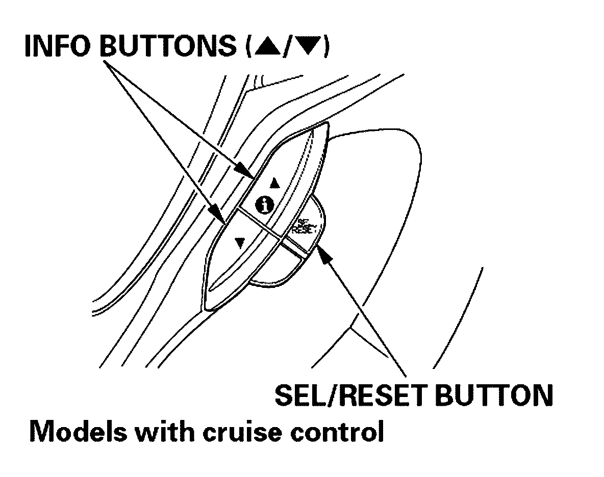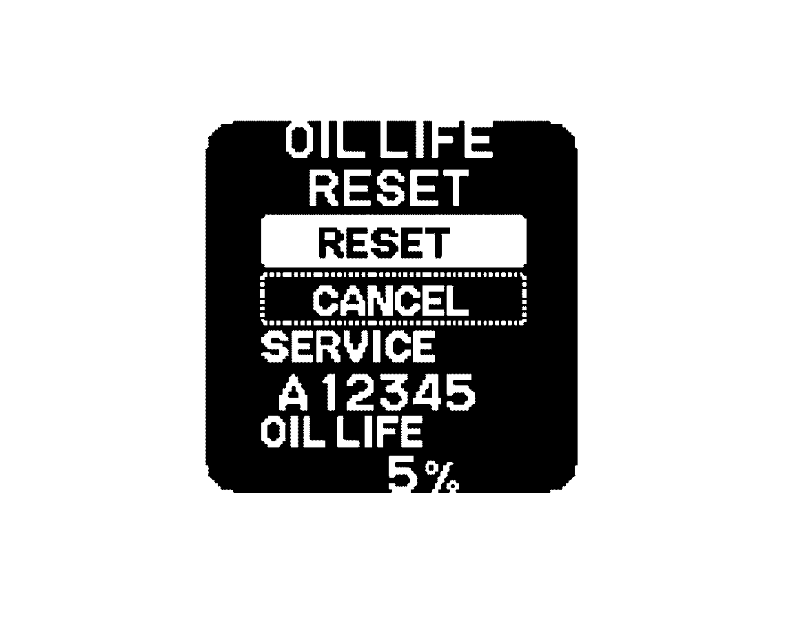 4. Select "RESET" by pressing the INFO button, then press the SEL/RESET button to reset the engine oil life display. The maintenance item code(s) will disappear, and the engine oil life will reset to "100." If you want to cancel the oil life reset mode select "CANCEL."