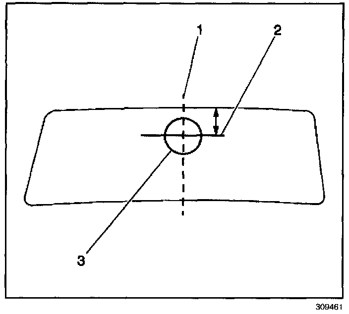 1. Determine the location of the mirror mounting base by marking the outside of the windshield with a marking pencil where the base was previously located. If it is not clear where the base was mounted, use the following steps to determine where the base should be installed: