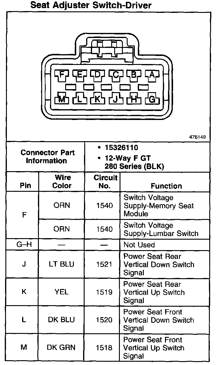 Seat Adjuster Switch - Driver Part 2: