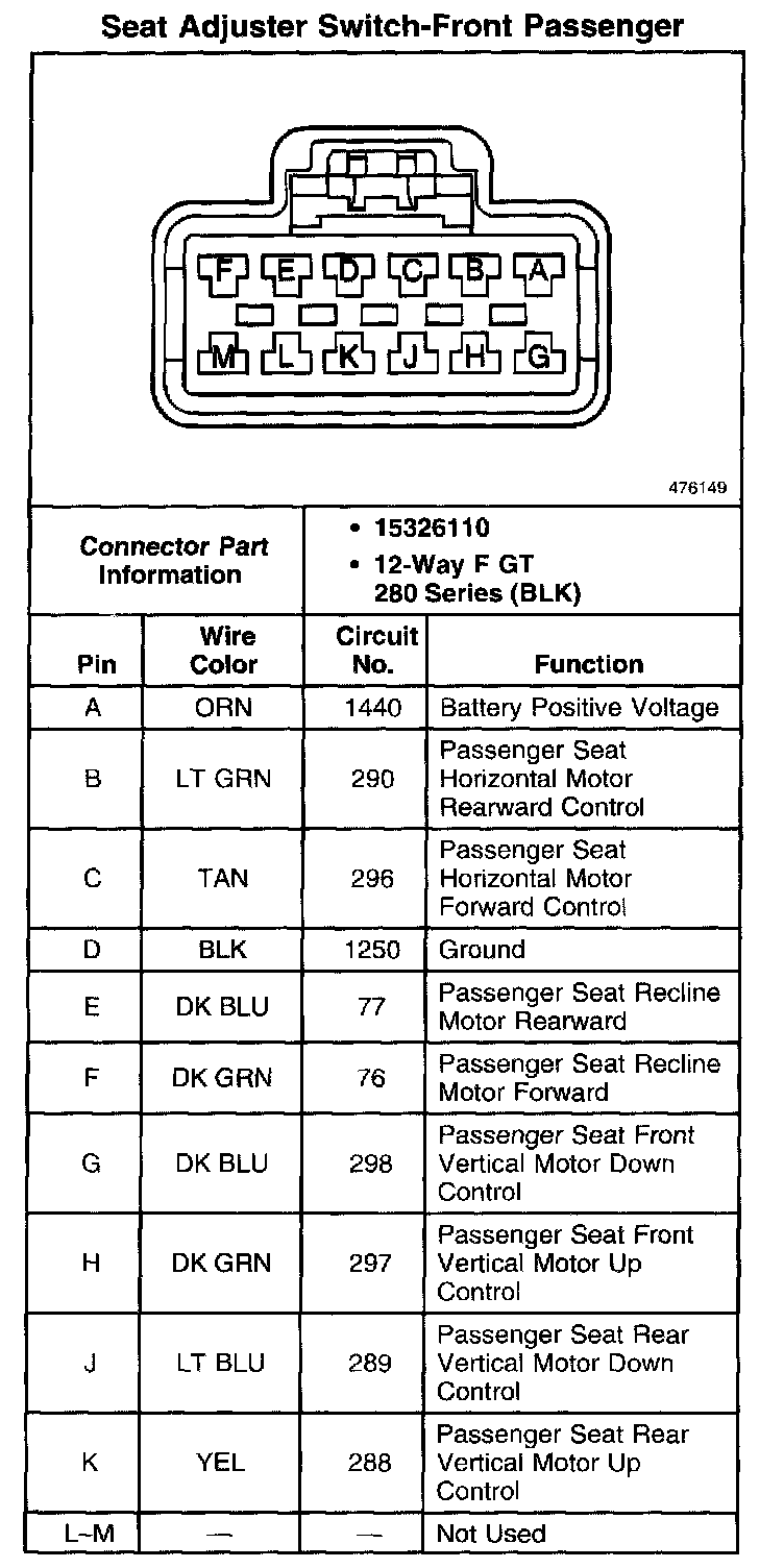 Seat Adjuster Switch - Front Passenger: