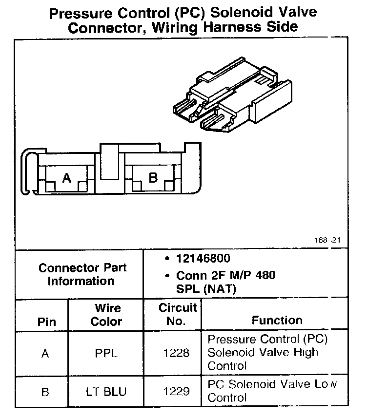Pressure Control (PC) Solenoid Valve Connector, Wiring Harness Side: