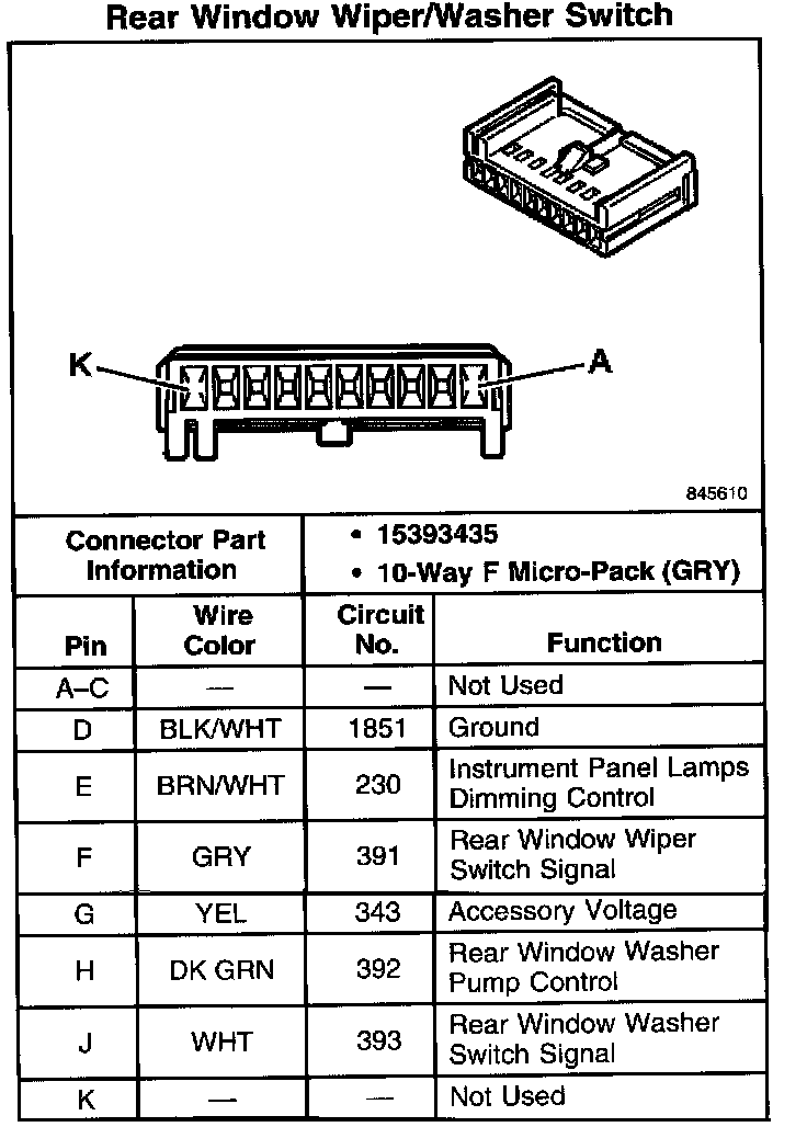 Rear Window Wiper/Washer Switch: