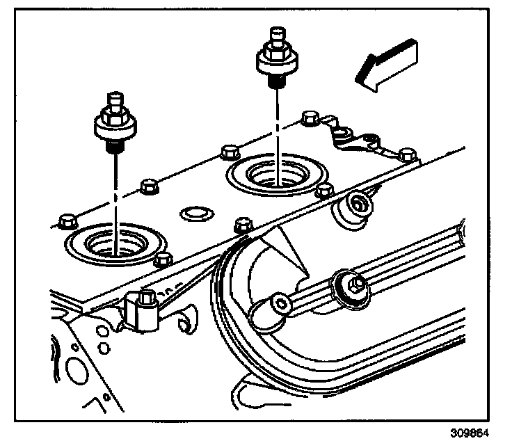 8. Remove the knock sensor oil seals (1) from the cover (2).