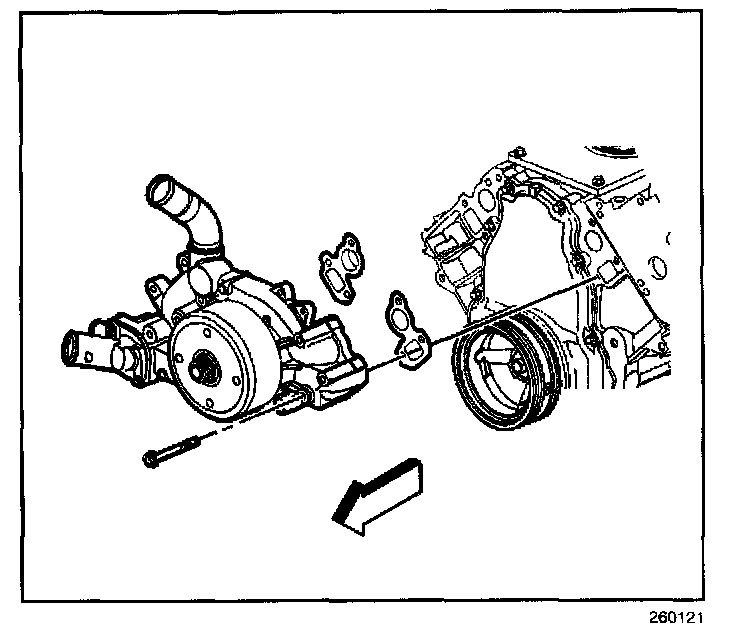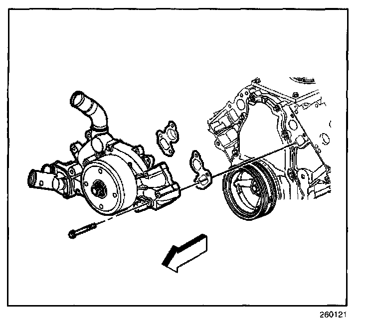 2.1. Tighten the water pump bolts a first pass to 15 N.m(11 lb ft).