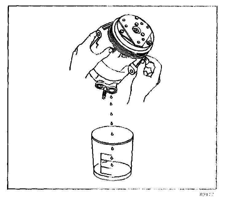 1. Drain the oil from both the suction and discharge ports of the removed compressor into a clean, graduated container. Rotate the compressor shaft to assist in draining the compressor.