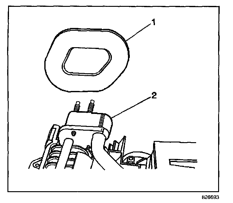 3. Install the evaporator cowl gasket (1) to the evaporator (2).