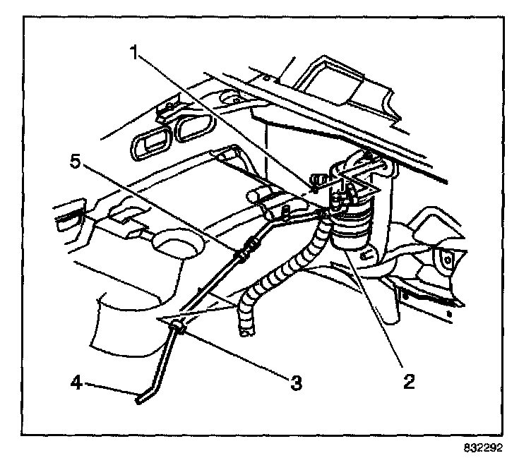 4. Remove the A/C refrigerant filter (5) from the evaporator tube (4).