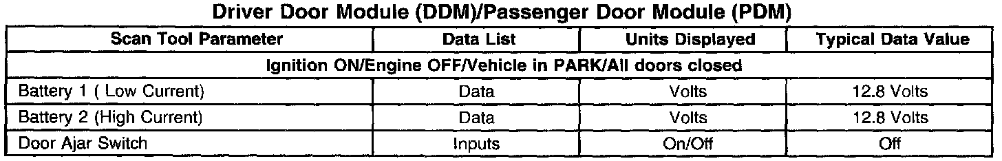 Scan Tool Data List - Driver Door Module (DDM)/Passenger Door Module (PDM):