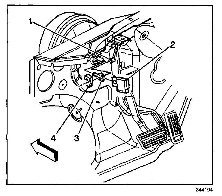 1. Disconnect the electrical connector from the stop lamp switch (2).
