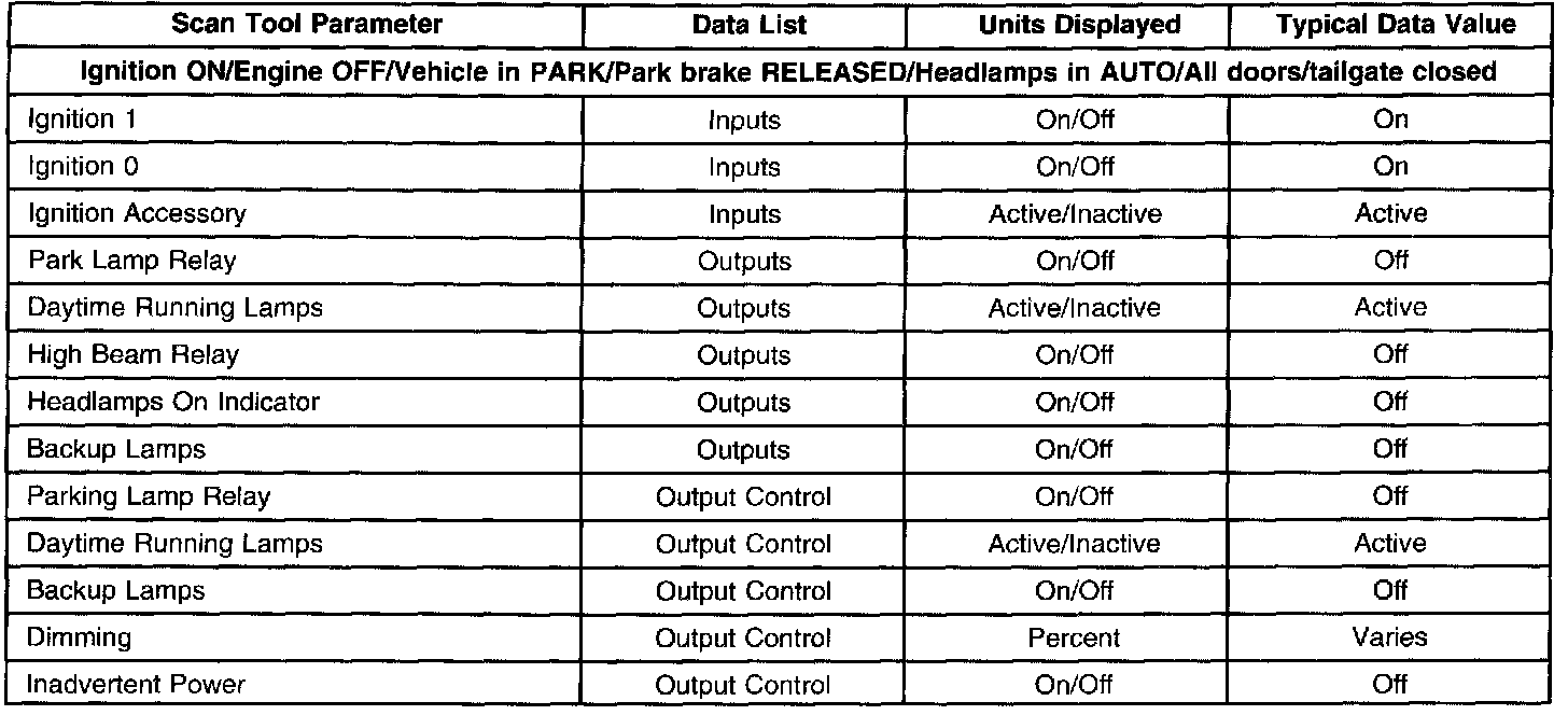 Scan Tool Data List