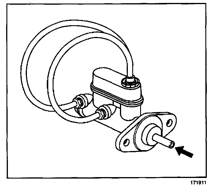 1. Secure the mounting flange of the brake master cylinder in a bench vise so that the rear of the primary piston is accessible.