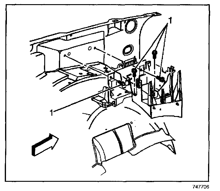 9. To replace the engine electrical center bracket remove the 4 retaining bolts (1).