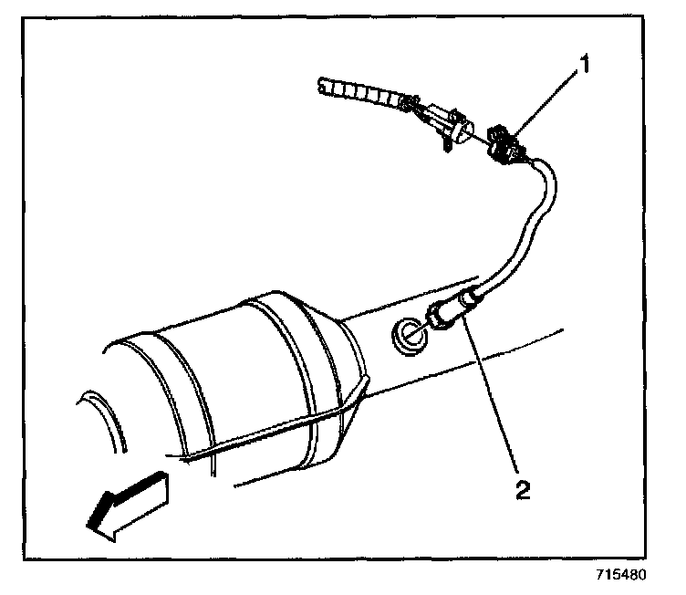 3. Remove the HO2S (2) using a J 39194-B.