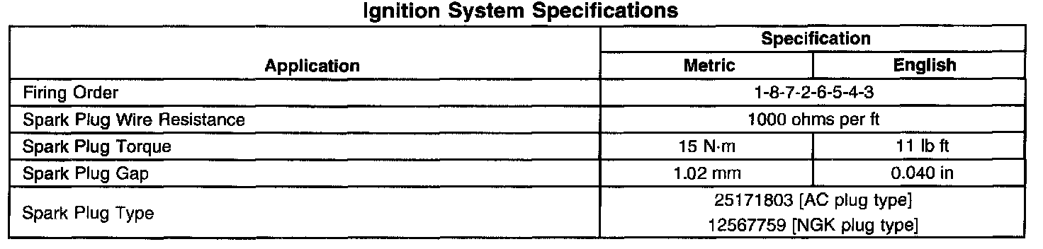 Ignition System: Specifications