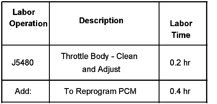 Clean throttle body bore and throttle valve plate of carbon using a shop rag and an appropriate cleaner. Refer to Engine Controls Repair Procedures - Throttle Body Cleaning Procedure. This procedure may be performed at any mileage necessary. Check to determine if the PCM calibration has been previously updated to one that includes the update for throttle body coking. For 2003 model year vehicles, look in the operating system portion of the calibration. For 2000-2002 model year vehicles, look in the engine portion of the calibration. If not, then update the PCM calibration to the latest calibration.