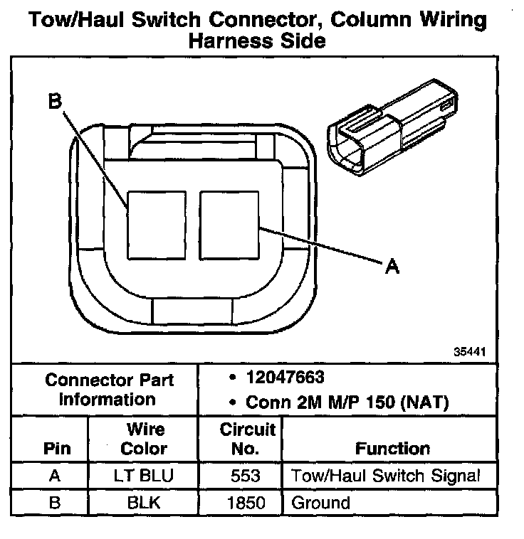 Tow/Haul Switch Connector, Column Wiring Harness Side: