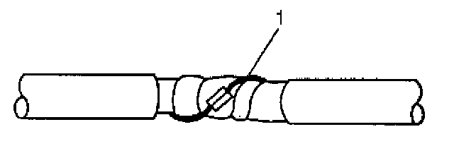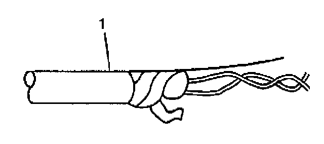 1. Remove the outer jacket (1). Use care not to cut into the drain wire of the mylar tape.
