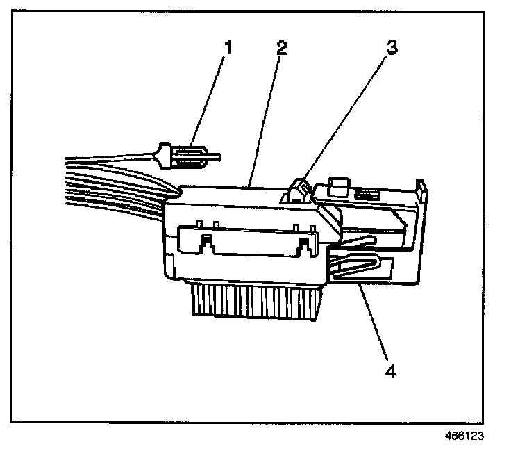 7. Disconnect the SDM wiring harness connector (1) from the SDM (3).