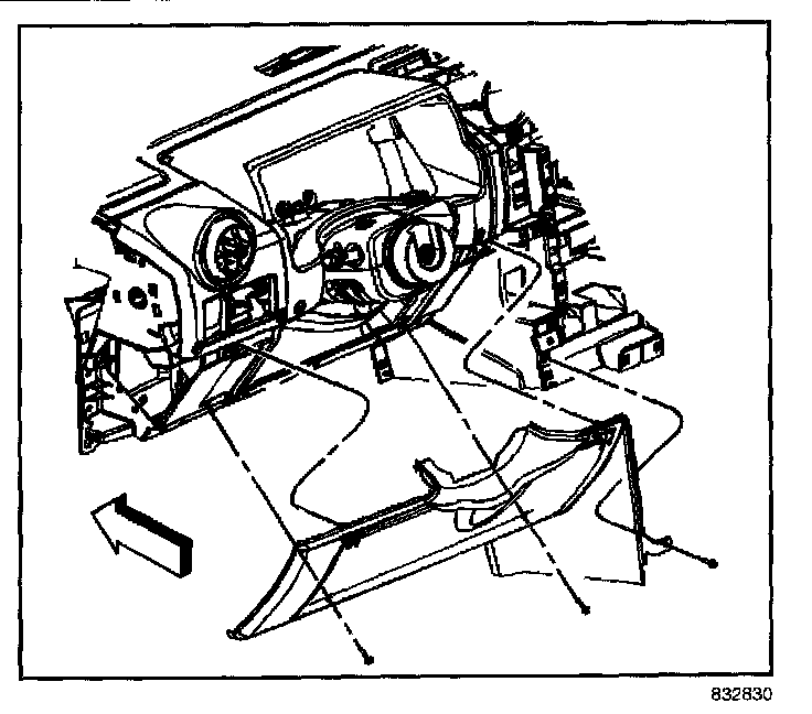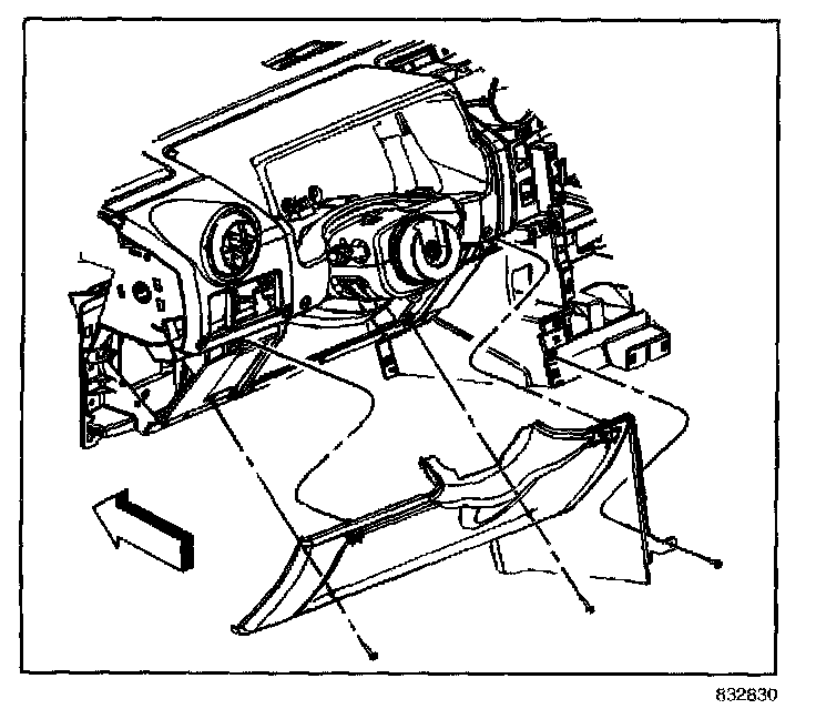 1. Loosen and move reward center console for access to knee bolster bolt. Refer to Console Replacement.