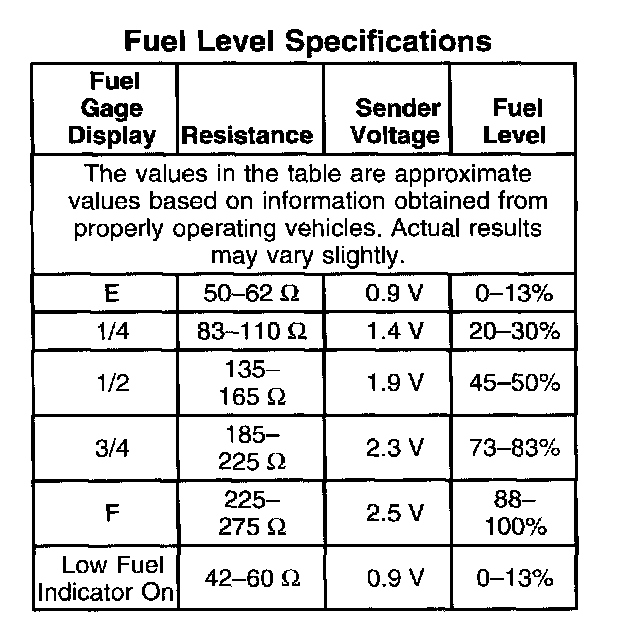 FUEL LEVEL SPECIFICATIONS