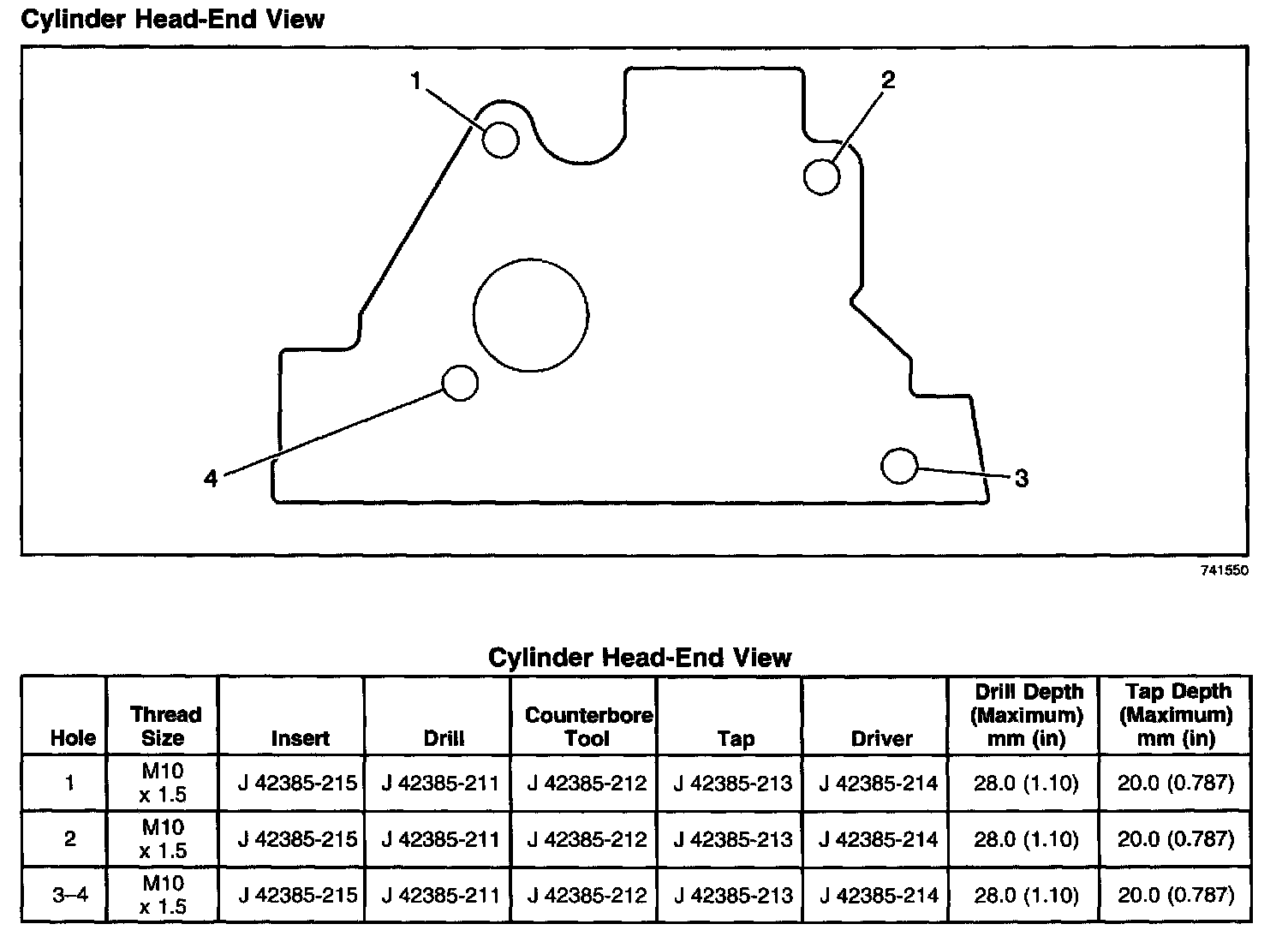 Thread Repair Specifications - Cylinder Head