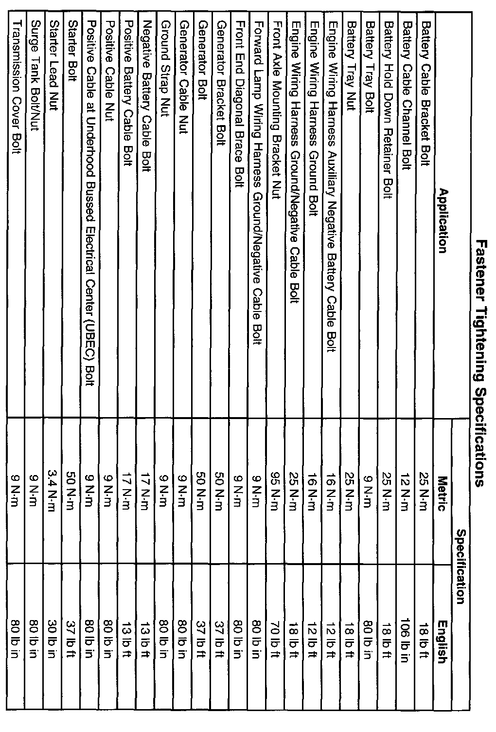 Starting and Charging: Specifications