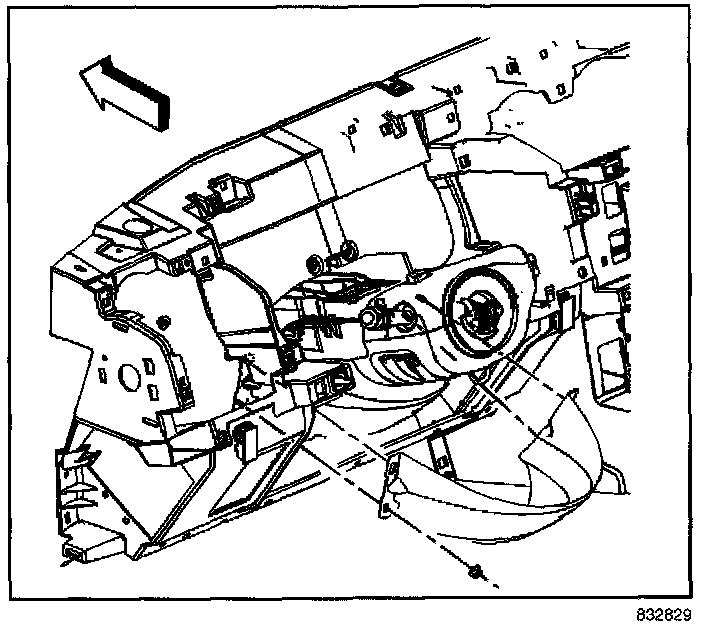 1. Loosen and move center console reward for access to the knee bolster bolt. Refer to Console Replacement.