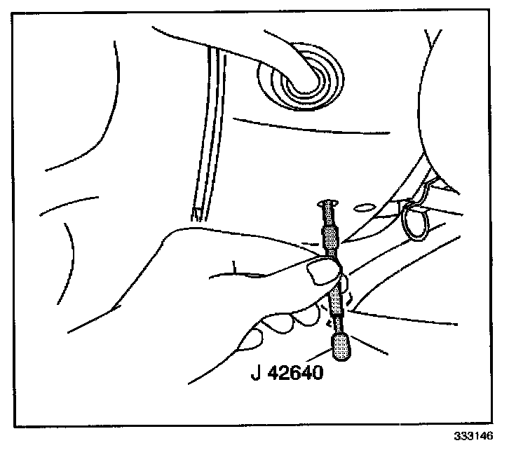 9. Unlock the steering column by removing J 42640 from the lower trim cover access hole.
