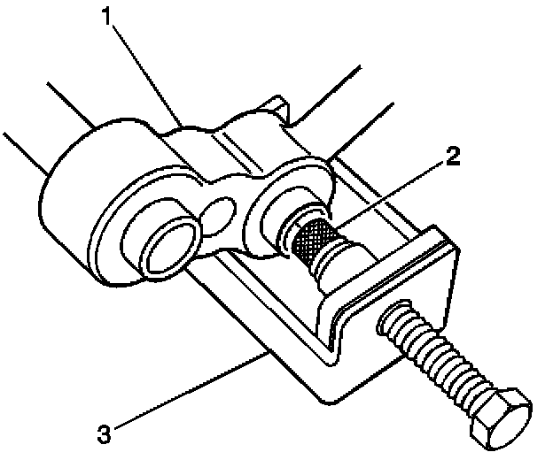 6. Reinstall the manifold (1) on the rear of the air conditioning compressor. Make sure to tighten to the correct specifications.