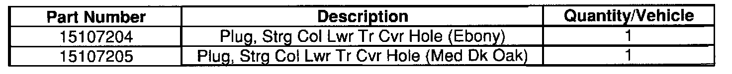 Plugs required to complete this recall are to be obtained from General Motors Service Parts Operations (GMSPO). Please refer to your "involved vehicles listing" before ordering parts.