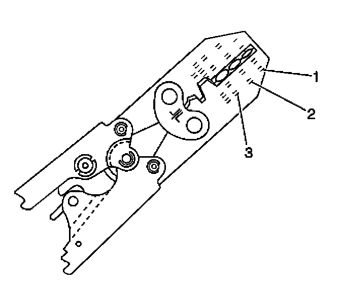 6. Place the splice sleeve in the nest. Ensure that the crimp falls midway between the end of the barrel and the stop. The sleeve has a stop (3) in the middle of the barrel (2) in order to prevent the wire (1) from going further. Close the hand crimper handles slightly in order to firmly hold the splice sleeve in the proper nest.