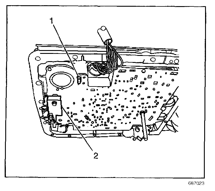 6. Ensure that the solenoid screens (1, 2) are in place on the spacer plate