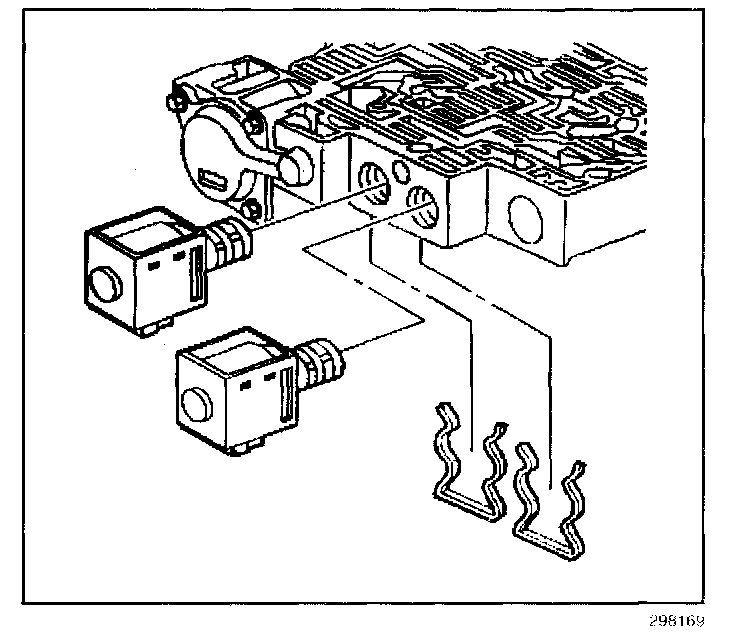 4. Install the 1-2 and 2 3 shift solenoid retainers.