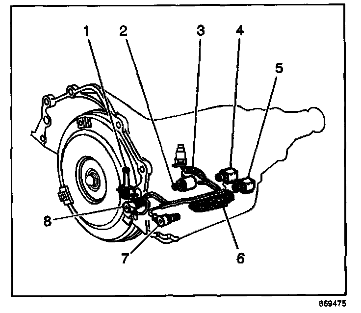 - The torque converter clutch pulse width modulation (TCC PWM) solenoid (8)