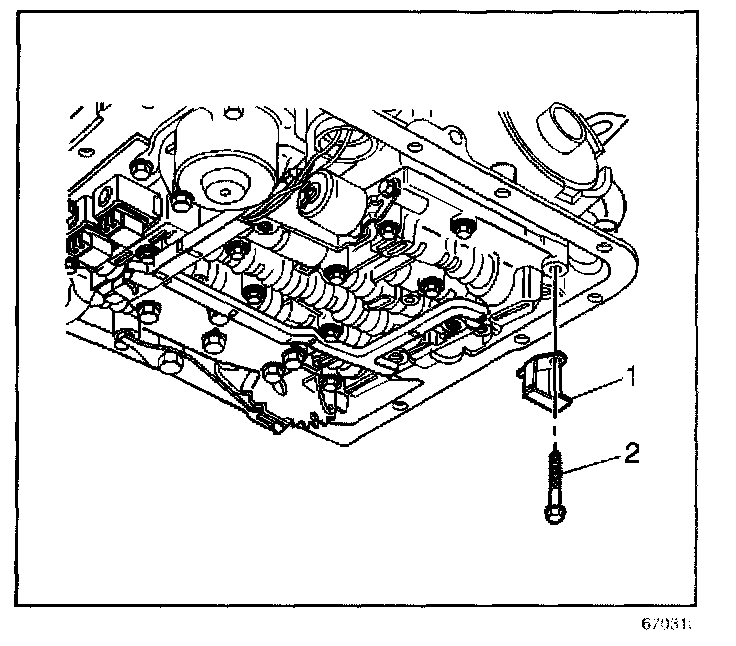 9. Remove the TCC PWM solenoid (1) in order to access the TCC solenoid retaining bolts.