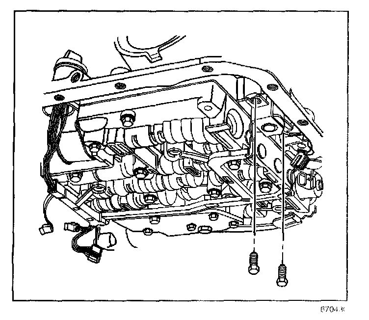 13. Remove the control valve body bolts which retain the transmission fluid pressure switch to the control valve body.