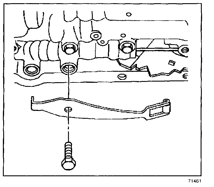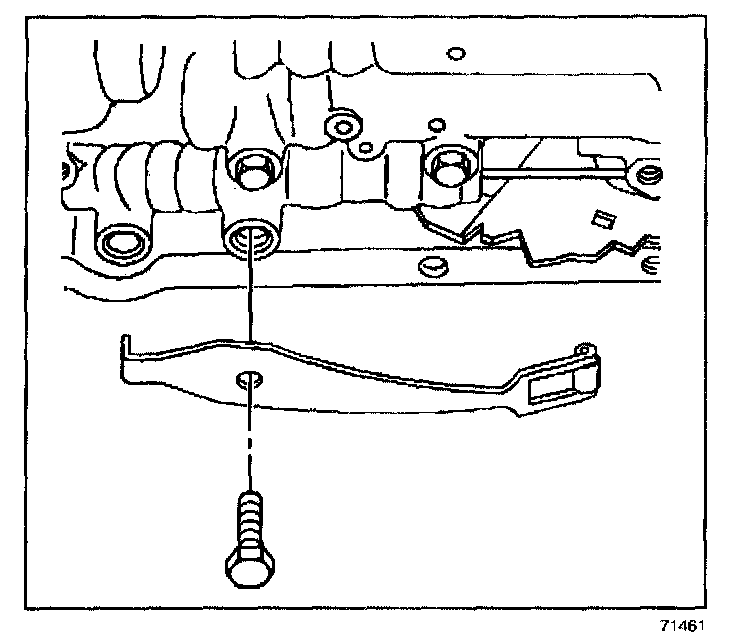 5. Do not install the transmission fluid indicator stop bracket and bolt at this time.