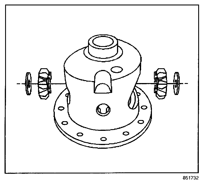 8. Remove the differential pinion gears and thrust washers by performing the following steps: