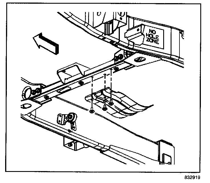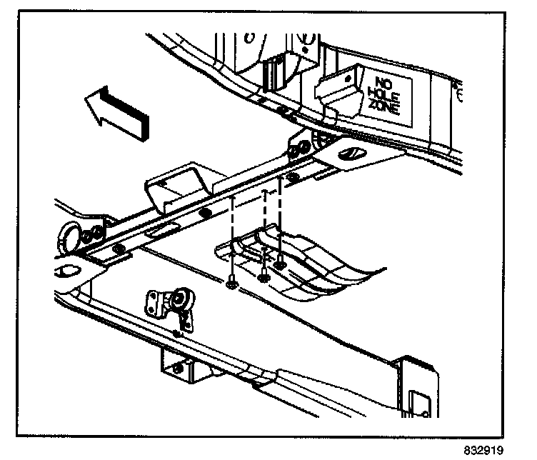2. Remove the transfer case shield mounting bolts from the cross member.