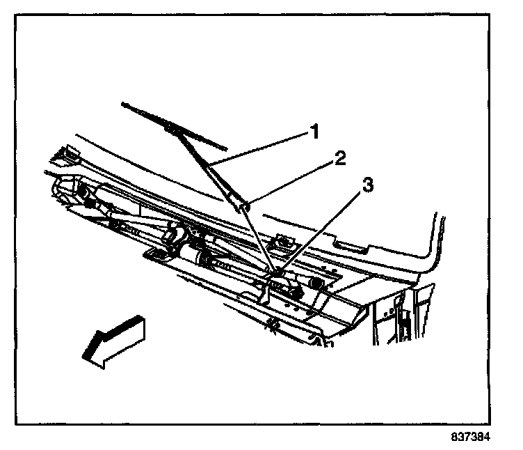 1. Lift the wiper arm (1) and raise approximately 2 inches from the glass.