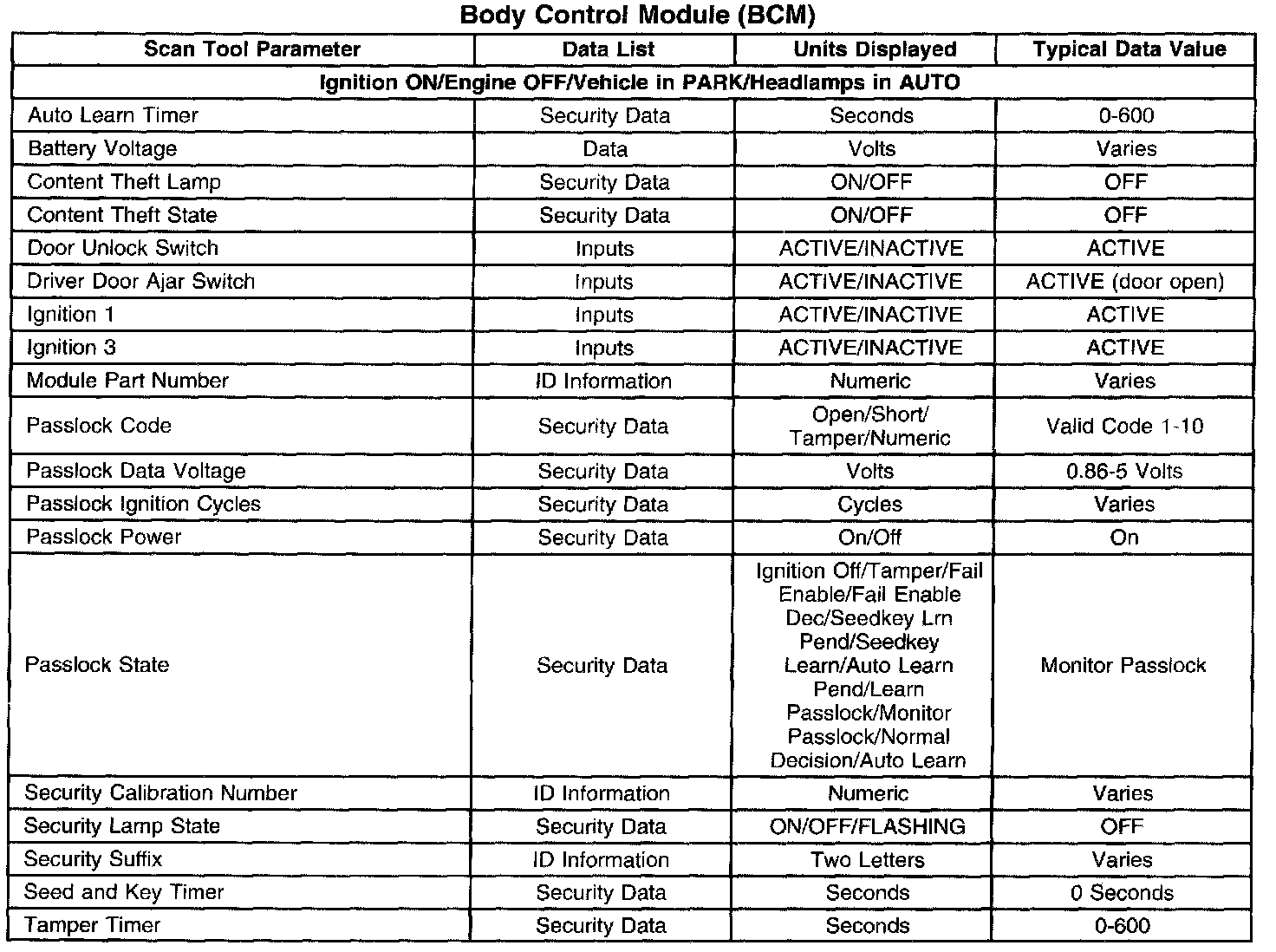 Body Control Module (BCM):