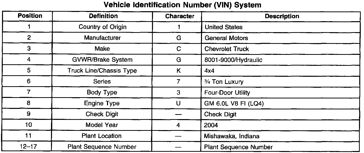 VEHICLE IDENTIFICATIONVehicle Identification Number (VIN) System: