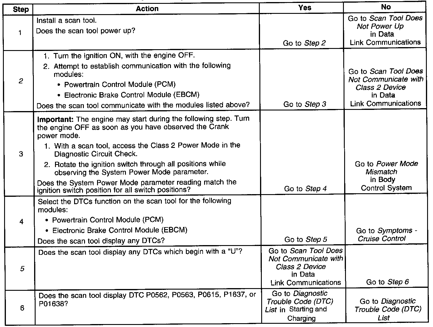 2. Lack of communication may be due to a malfunction in the class 2 serial data circuit. The specified procedure will determine the particular condition.